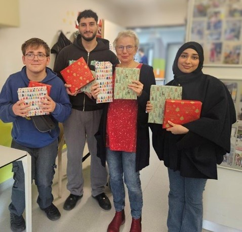 Zahraa Kaawar, Sven-Winfried Schwarz und Arda Cataloglu überbrachten die liebevoll verpackten Pakete persönlich.