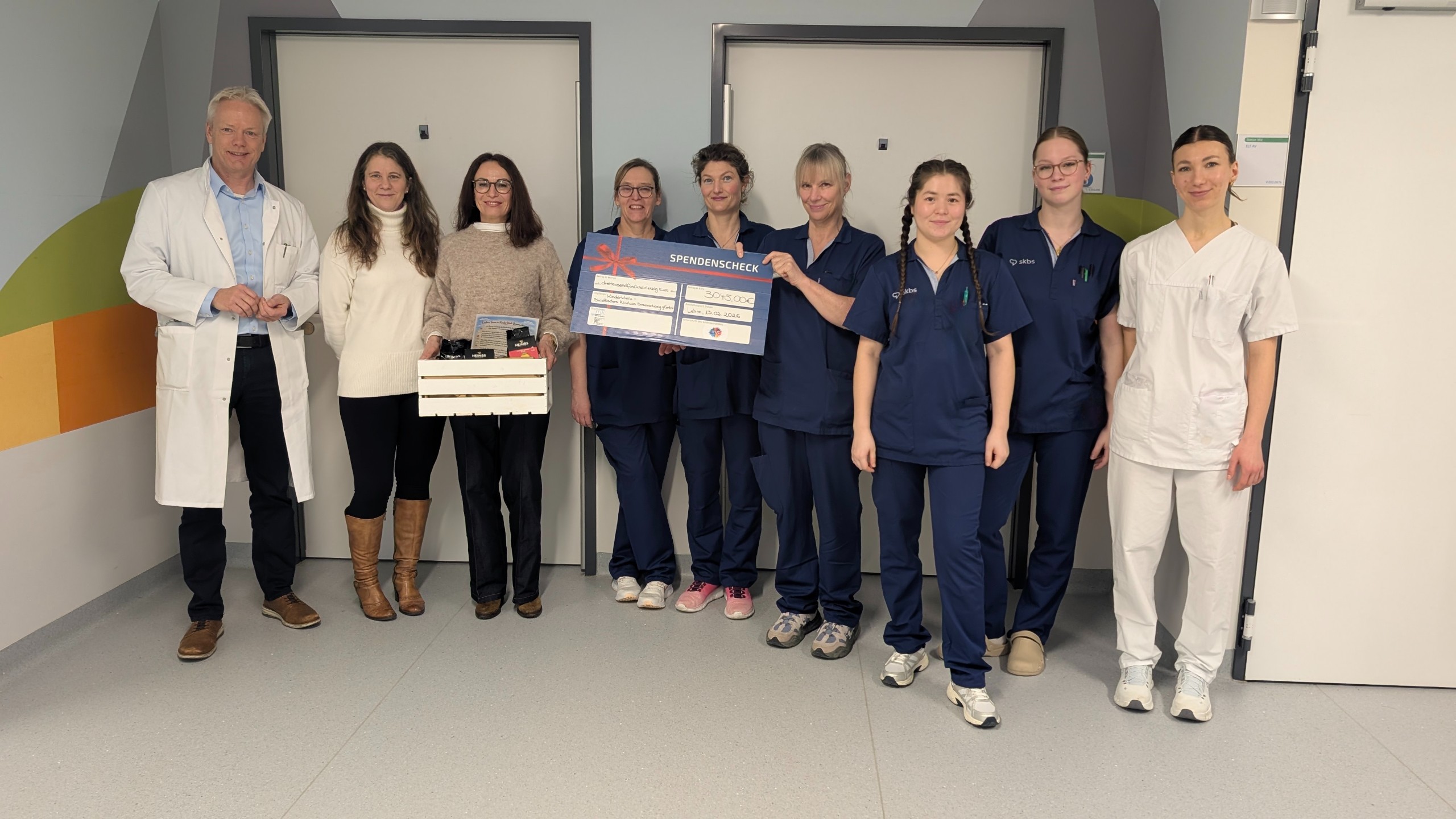 Dr. Andreas Beilken, Chefarzt der Klinik für Kinder - und Jugendmedizin, nahm die Spende im Namen des ganzen Teams entgegen: „Wir haben uns nicht nur über die finanzielle Unterstützung, sondern auch über den liebevoll zusammengestellten Präsentkorb gefreut. Solche Gesten der Wertschätzung bedeuten unserem Team sehr viel.“